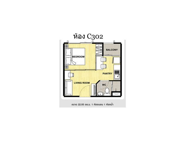 ห้อง C302 ขนาด 22.05 ตร.ม.