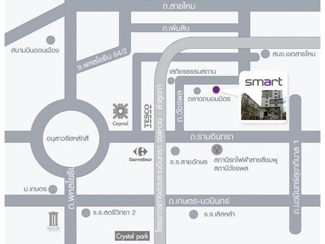 ถนนวัชรพล ทางเข้าออกคอนโดได้สะดวก สามารถเข้าได้ทางซอย รามอินทรา65 และ กม.5