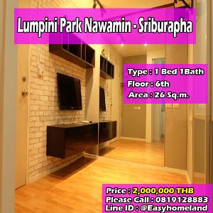 ขายคอนโดโครงการ ลุมพินีพาร์ค นวมินทร์ ศรีบูรพา - 2000000 บาท ติดต่อคุณ Easyhomeland Easyhomeland