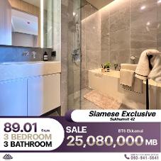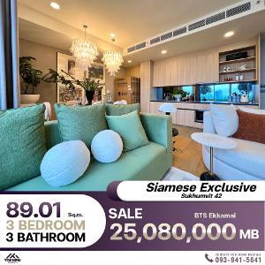 ขายด่วน Siamese Exclusive 42 ห้องตกแต่งสวยงาม 3 ห้องนอน 3 ห้องน้ำ พื้นที่ขนาด 89.01 ตร.ม.