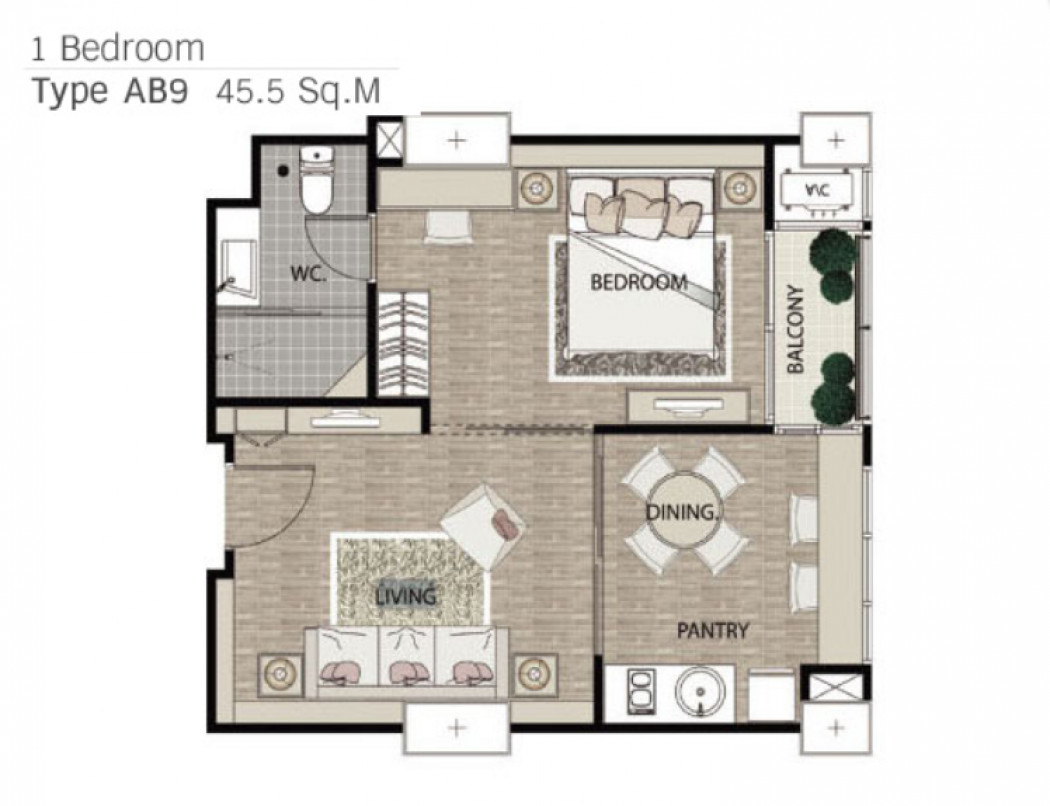 | ขนาดห้อง | 45.0 ตารางเมตร |