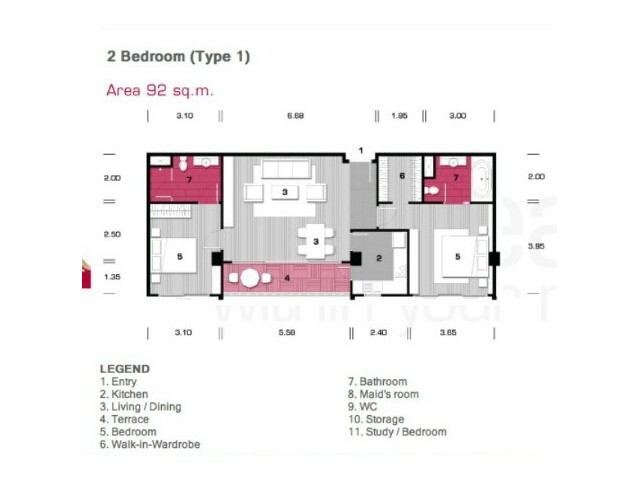 จำนวนห้อง: 2ห้องนอน, 2 ห้องน้ำ
