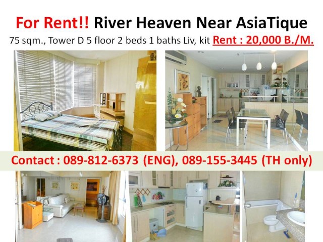 @++@ให้เช่าคอนโด River Heaven เจริญกรุง76/1 (( 2 ห้องนอน / 70 ตรม / 16500 ต่อเดือน )) ใกล้เอเชียทีค