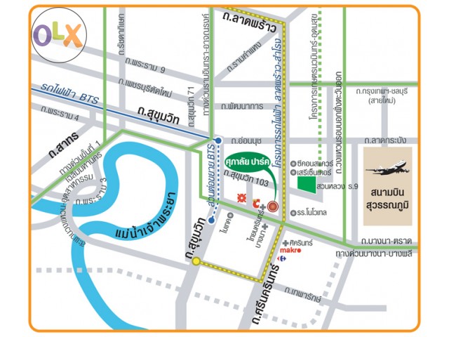 - Close to Suvarnabhum Airport, Central City Bang Na department store, Rama 9 garden, Seacon sqaure department etc.