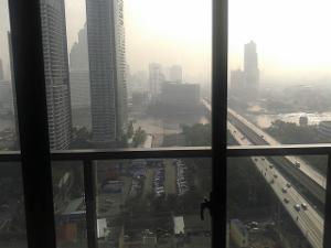 Lovely corner unit in SE on a very high floor, nice air from South and East, Chao Phraya river view from each angle including the master bedroom, master bathroom, living room and the other bed room.