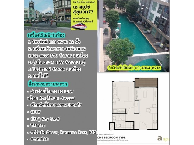 ขายด่วน!!คอนโด เอ สเปซ สุขุมวิท 77 ใกล้ BTS อ่อนนุช สนใจติตด่อ Line @condobkk
