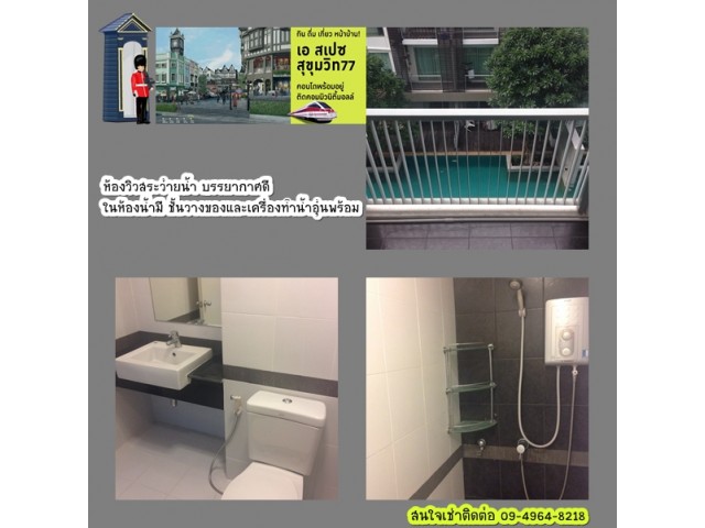 ให้เช่า คอนโด เอ สเปซ A Space สุขุมวิท 77 วิวสระว่ายน้ำ ลมเย็น พัดสบายทั้งวัน