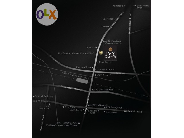Ivy Ampio อยู่ข้างๆตึก True Tower และใกล้กับ MRT ศูนย์วัฒนธรรมแห่งประเทศไทย ระยะทางประมาณ 250 เมตร และจากคอนโดไปเซ็นทรัลพระราม 9 ประมาณ 400 เมตร