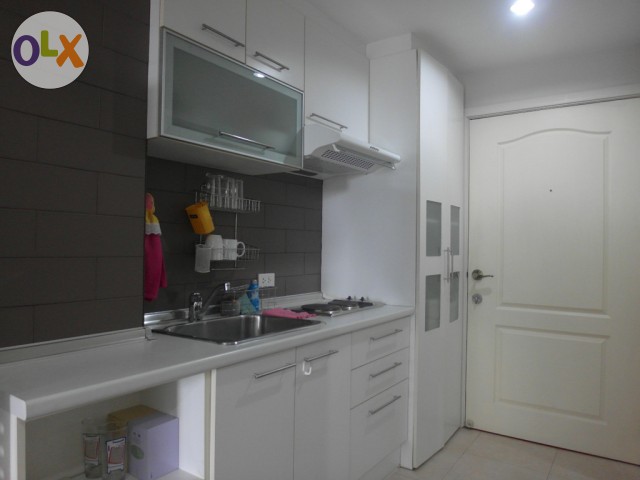 Fully furnished, TV LCD 32”, well-equipped kitchen induction hob, cooker hood, microwave, fridge, cabinets. Bedroom with an Air Purifier, King-size bed and big wardrobe. Living room with a sofa, desk and chair, dining table. Two split air conditioners. Washing machine, Bathtub, Water heater