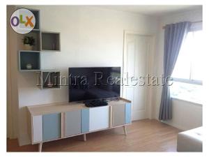 Modern 2 bedroom 2 bathroom fully furnished with brand new furnitures. This community is safe and green with garden, playground, fitness room, swimming pool also very convenient with plaza: convenience store, laundry, restaurant, etc.