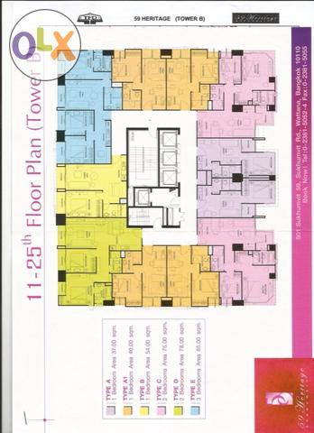 59 HERITAGE Tower B Few minutes walk to Thonglor BTS station 2 Bed 2 Bath 20FL 48000 Baht