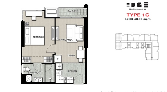Edge Sukhumvit 23 (เอดจ์ สุขุมวิท 23) ขนาด 30.99 ตร.ม 1 นอน 1 น้ำ ชั้น 14 มีอาคารเดียว ฟรีค่าโอน