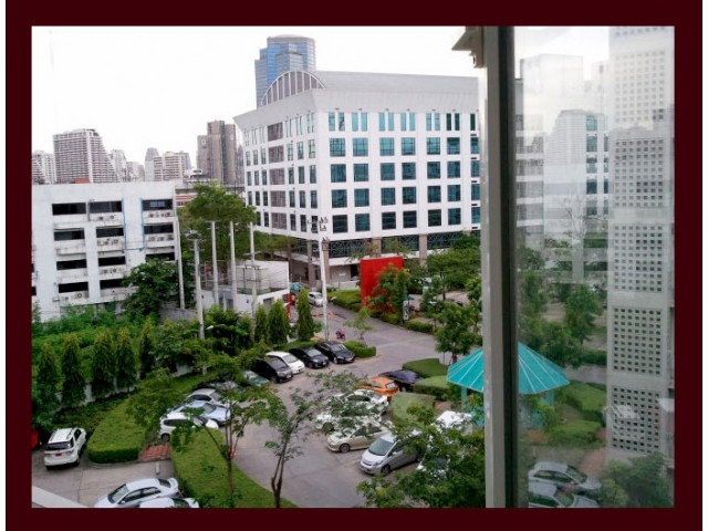 ตึกนี้ข้างล่างมีสวนหย่อม ทำเลดีมากสามารถเข้าออกได้หลายเส้นทาง