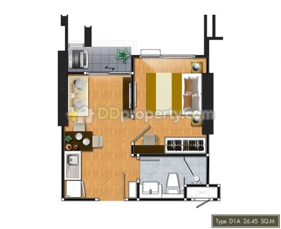 รายละเอียดห้อง - ห้อง 1 Bedroom, ชั้น 6, ทิศใต้, พื้นที่ 26.45 ตรม. - แถม Furniture Build-in // สุขภัณฑ์ห้องน้ำ / เครื่องปรับอากาศ 2 เครื่อง / เครื่องทำน้ำอุ่น / ชุดครัว + เตาไฟฟ้า - ราคา 2,592,100 บาท