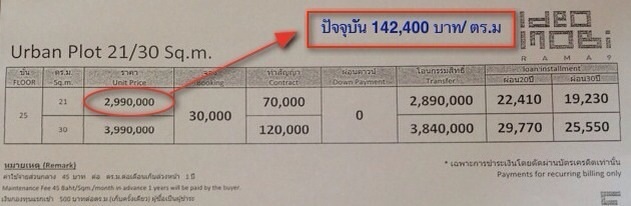 | ราคาต่อตารางเมตร | บาท/ตารางเมตร |