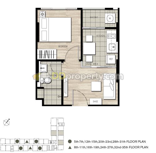 คอนโดเดอะ เบส พระราม 9-รามคำแหง 1 ห้องนอน ขนาด 31ตารางเมตรห้องมุม