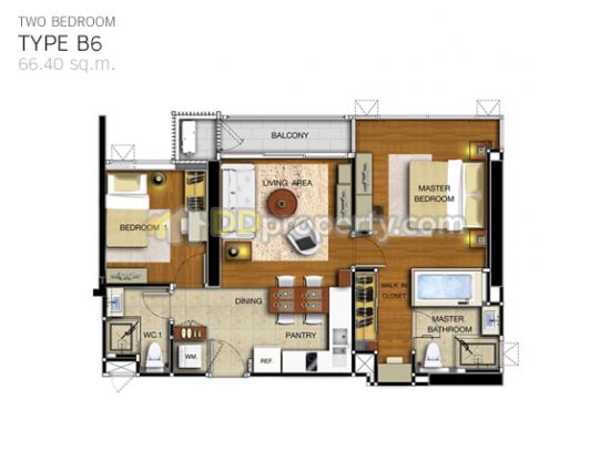 ขนาดพื้นที่ 66.0 ตารางเมตร