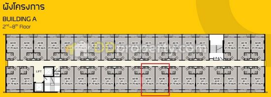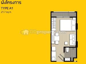 ห้อง studio ขนาด 21.7 ตร.ม. อาคาร A ชั้น 2