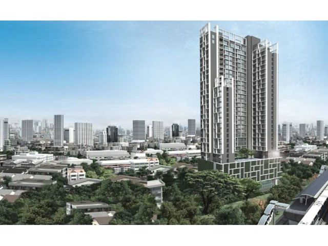 New condominium next to skytrain BTS Krung Thon Buri Station. 80 meters to escalator to the train. Wide road, beautiful views.