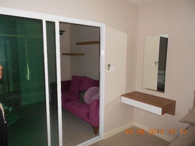 แอร์ 1 เครื่อง, , ตู้เสื้อผ้า, โต๊ะเครื่องแป้ง, ที่วางทีวี, ชั้นวางของ, โซฟา, เครื่องทำน้ำอุ่น, ครัวบิวท์อิน, เตาไฟฟ้า, ที่ดูดควัน,ตู้แขวน, ม่าน