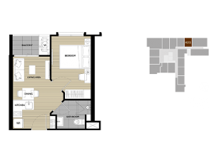 ห้องชุดที่ขาย อยู่ชั้น 4 แบบห้องพัก A3-2 ขนาด 30.5 ตร.