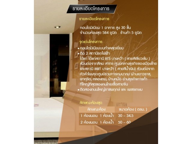 ให้เช่าคอนโด The President สาทร-ราชพฤกษ์ 3 ติดสถานี BTS บางหว้า