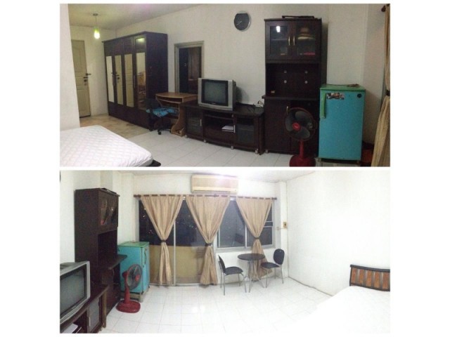 ห้องขนาด 30 ตร.ม. มีระเบียง ชั้น 8 (บนสุด) ห้องมุม มีกล้องวงรปิดทั้งตึก (หน้าห้อง) ลิฟต์ 2 ตัว พร้อมเฟอร์นิเจอร์ทั้งหมดในรูป ได้แก่ เตียงขนาด 5 ฟุต ตู้เสื้อผ้า ชั้นวางทีวี ตู้หนังสือ โต๊ะทานอาหาร โต๊ะคอม เก้าอี้ ทีวี ตู้เย็น แอร์ เครื่องทำน้ำอุ่น