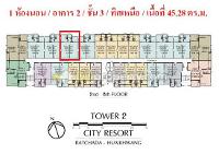 ขายดาวน์คอนโดศุภาลัยซิตี้รีสอร์ท รัชดา-ห้วยขวาง 1bedroom 45.5 ตรม
