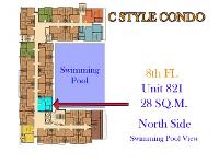 ขายดาวน์ คอนโด C STYLE ซอยรัชดา 18 ชั้น 8 ห้อง 821 วิวสระว่ายน้ำ